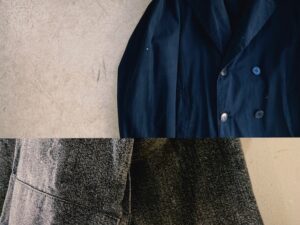 皆さん、こんばんは。   本日はヴィンテージウェアを紹介します。 3つに分けて投稿しますね。   [ブラックシャンブレーのアトリエコート] 年代:1950年代 サイズ:92–120(着用感M〜L) * […]