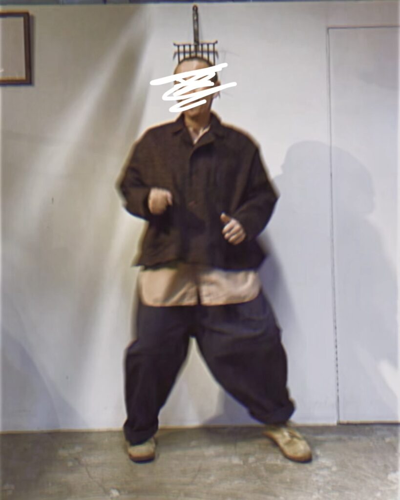 まずシルエットですが、ワイドな身幅&着丈は短めす。