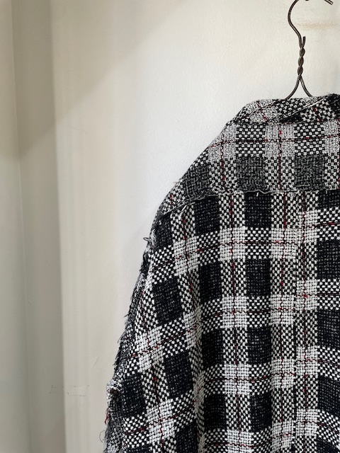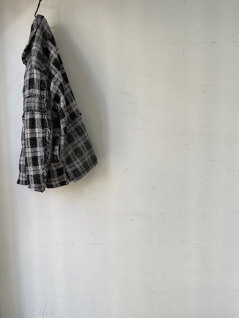 いつもの私の妄想ですが、当初はとある民族が着用しているロング丈のシャツから着想→なぜかテック系に流されそうになりスタンドカラーのシャツに落ち着くと思いきや最後はブルゾンに着地っていう、自分なりには面白い流れで出来た服です。
