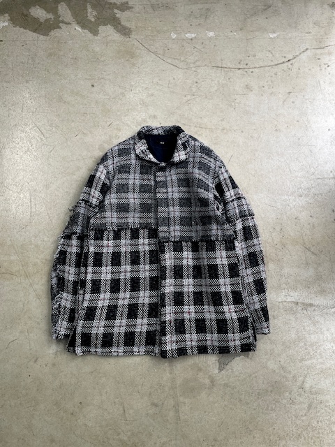 いつもの私の妄想ですが、当初はとある民族が着用しているロング丈のシャツから着想→なぜかテック系に流されそうになりスタンドカラーのシャツに落ち着くと思いきや最後はブルゾンに着地っていう、自分なりには面白い流れで出来た服です。